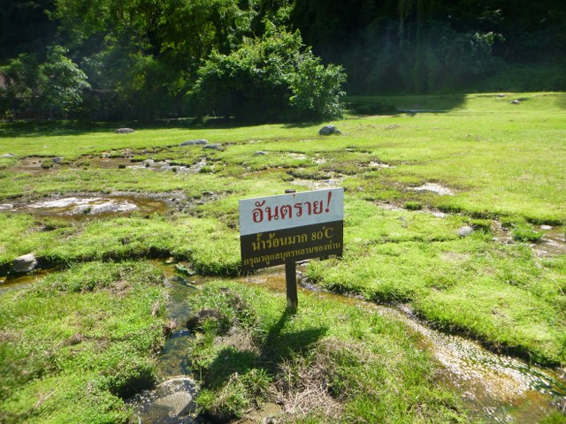 In het veld staan ook deze soort bordjes met informatie over de hete stoom.