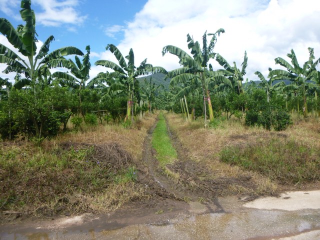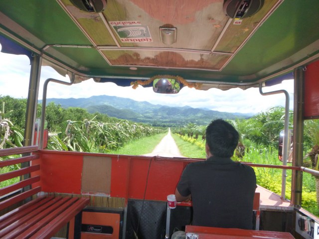 De bus reed naar de achterzijde van de plantage tegen de berg daar aan.